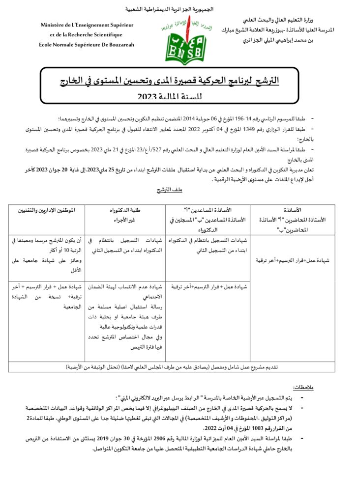 منصة الترشح للتربص قصير المدى بعنوان السنة المالية 2023